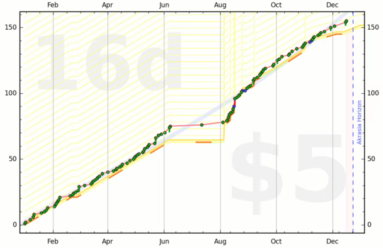 Goodreads tells me that my 150 books total to some 32,686 pages. That’s almost 90 pages every day given a 365-day year, but I was away studying Arabic for two months so actually it’s more like 107 pages per day. Look at the dip in my Beeminder graph where I read nothing: