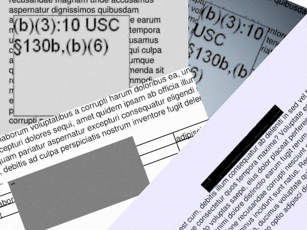 - Paste the redaction shape at a random location on top of the base unredacted image.