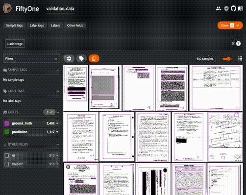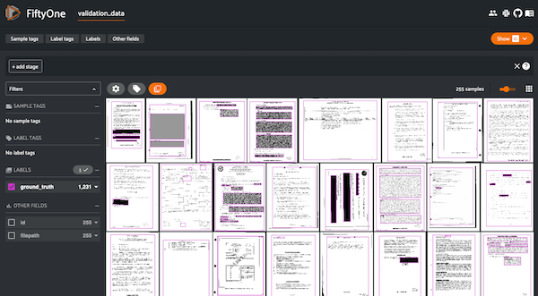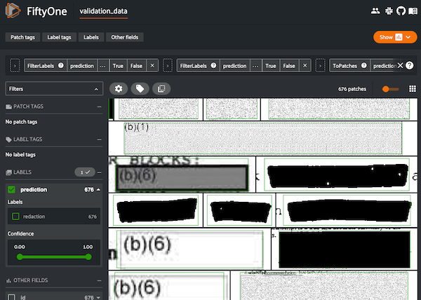 FiftyOne is a Python library that offers a visual interface to your data. For my redaction model, the base interface looks something like this: