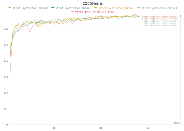 In a final twist, I second-guessed myself and wondered whether the original synthetic data was even helping at all… I removed the thousand or so ‘basic’ synthetic images from the data and retrained the model. To my surprise, I achieved more or less the same COCO score as I had with the basic synthetic images. I’m taking this as a strong suggestion that my basic synthetic images aren’t actually helping as much as I’d thought, and that probably a smaller number of them as a % of the total would be beneficial.