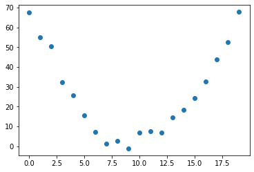 speed = torch.randn(20)*3 + 0.75*(time-9.5)**2 + 1