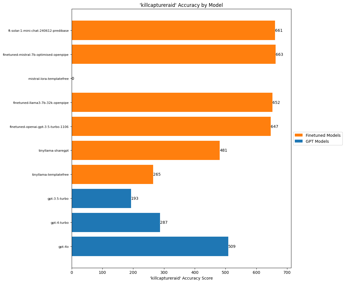 This is another attribute where it’s clear the lack of signposting in the prompts to the OpenAI models put them at a disadvantage. The term ‘kill-capture raid’ is a term of art and it was used in a specific way for the labelling. OpenAI knows nothing about how I made those calls, which explains why they performed so poorly here.