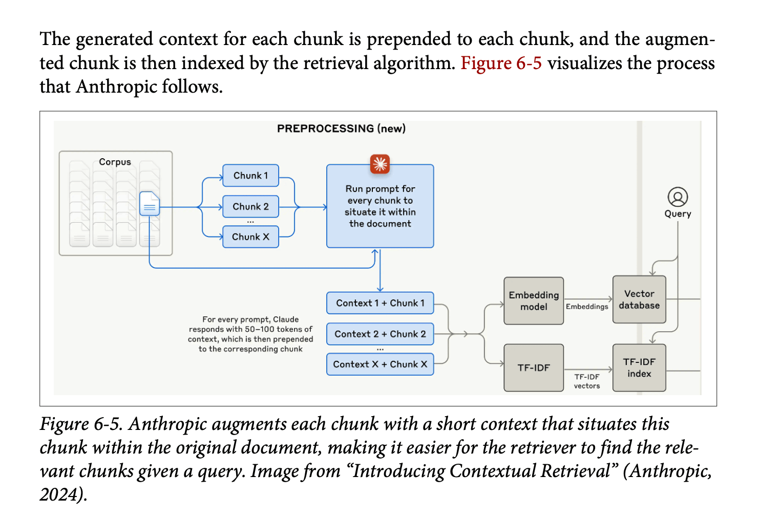 Contextual Retrieval: Introduces the innovative “chunks-for-chunks” approach, where each retrieved chunk triggers additional retrievals for supplementary context. This might include retrieving related tags or associated metadata to enrich the initial results.