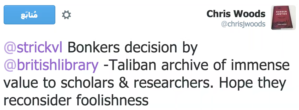 “Self-Censorship in Action: The British Library Rejects Taliban Archive” by Shaheed Fatima – offer the legal case that probably supported / lead to the British Library’s decision