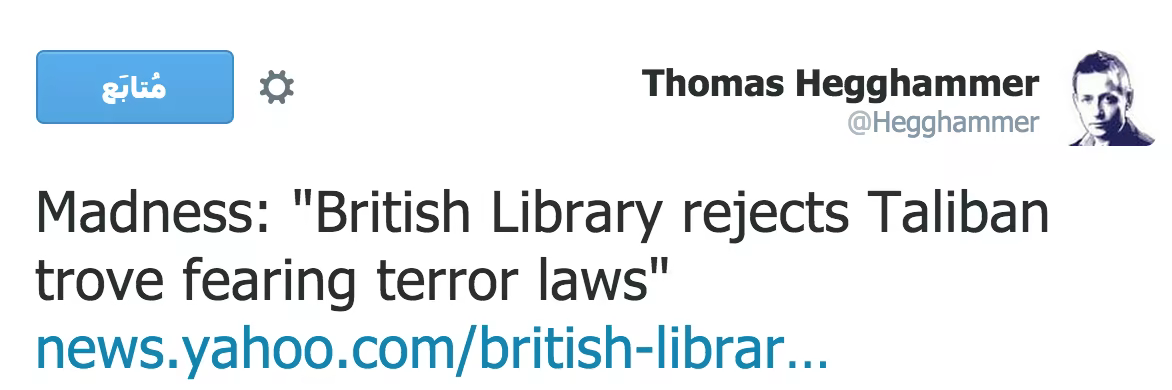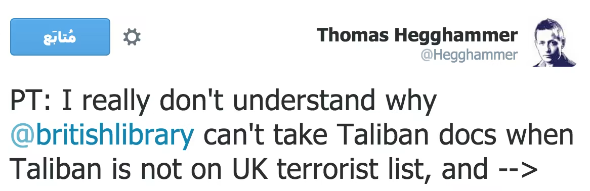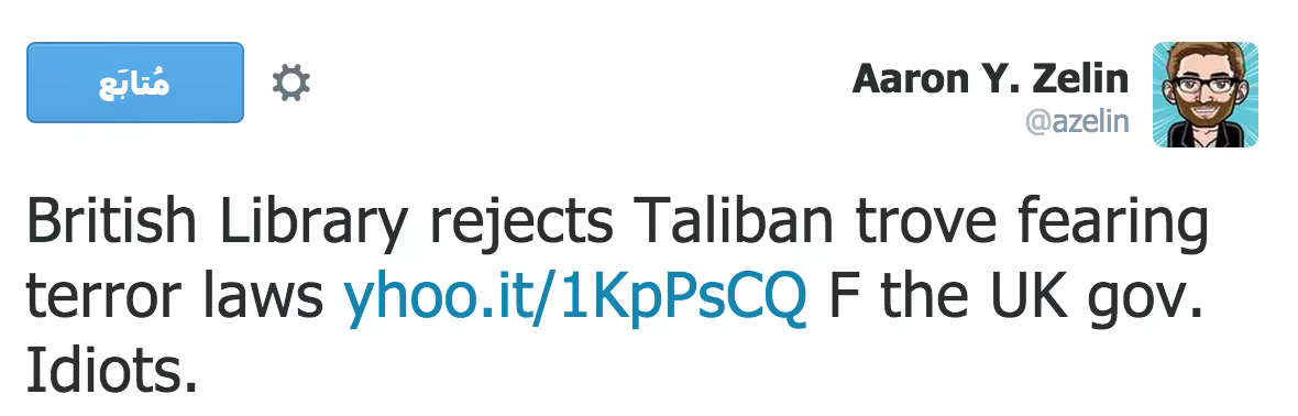 “British Library Won’t Hold Taliban Documents for Researchers Due to Anti-Terror Laws” by Peter van Buren – summarises some of the broad issues