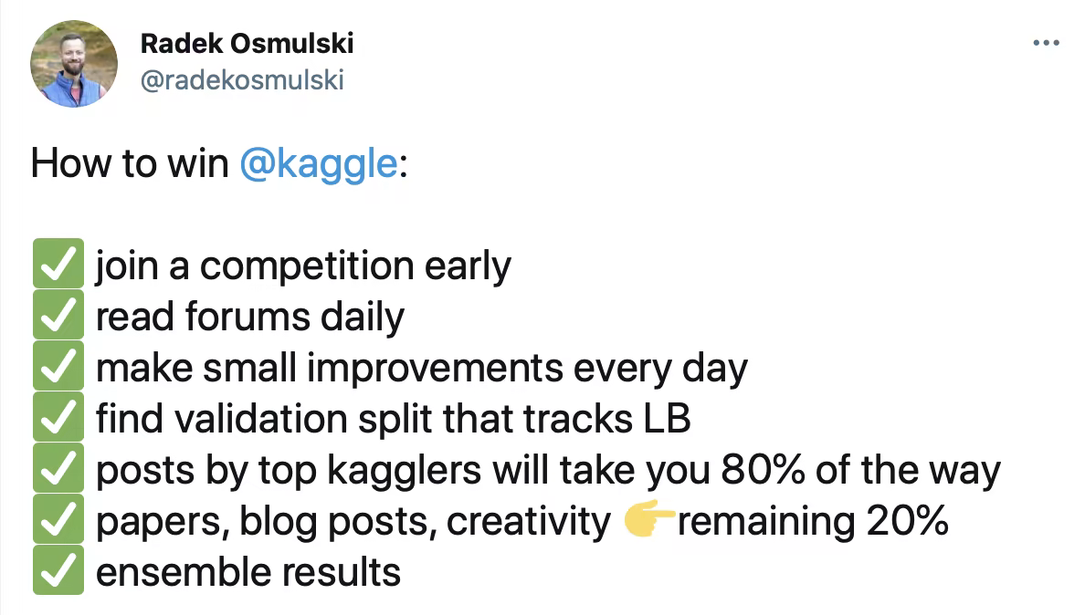 - Jeremy raises up the example of Radek Osmulski (who recently published an ebook called Meta Learning).