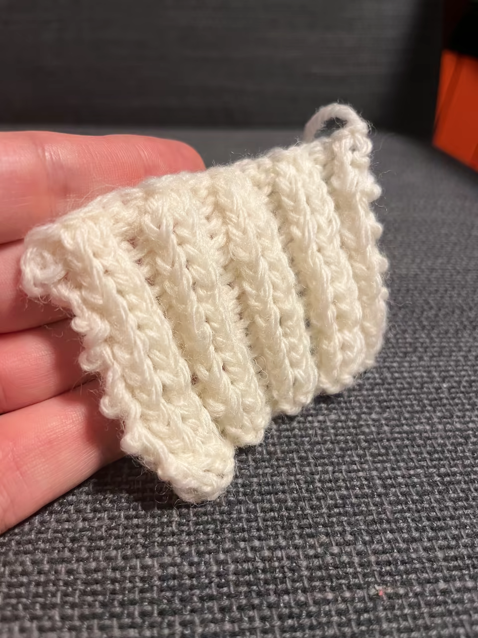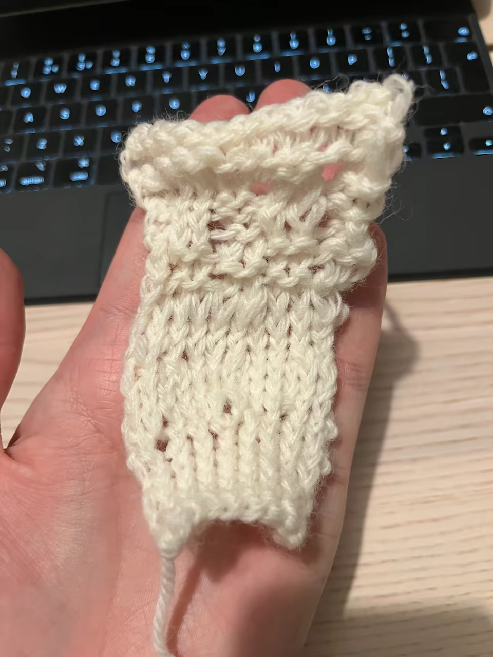 Along the way there were a few places, especially at the beginning, where I accidentally increased or decreased the number of stitches. I was quite happy with how it turned out, this being basically the first thing I’ve ever knit.