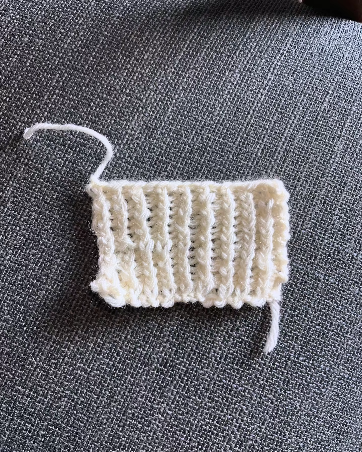 Note how the garter stitch doesn’t curl at the edges. That’s a characteristic of the pattern, as I learned! (And vice versa for the stockinette swatch).