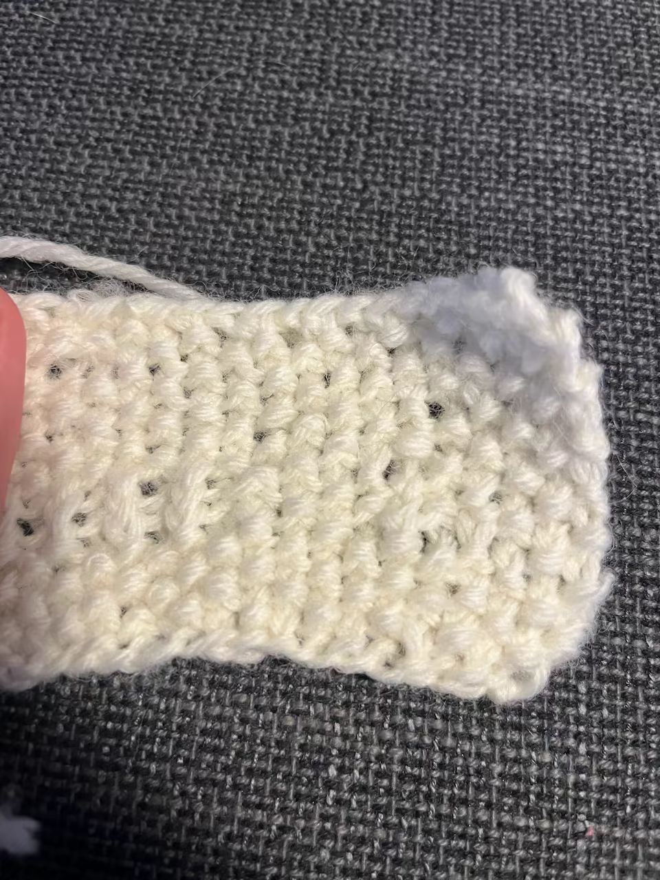 With the double ribs you can see that the base / cast on row is so much neater. Though now I’m starting to look at the right and left edges and wondering how those undulations can be reduced (or if it’s meant to be this way at all?).